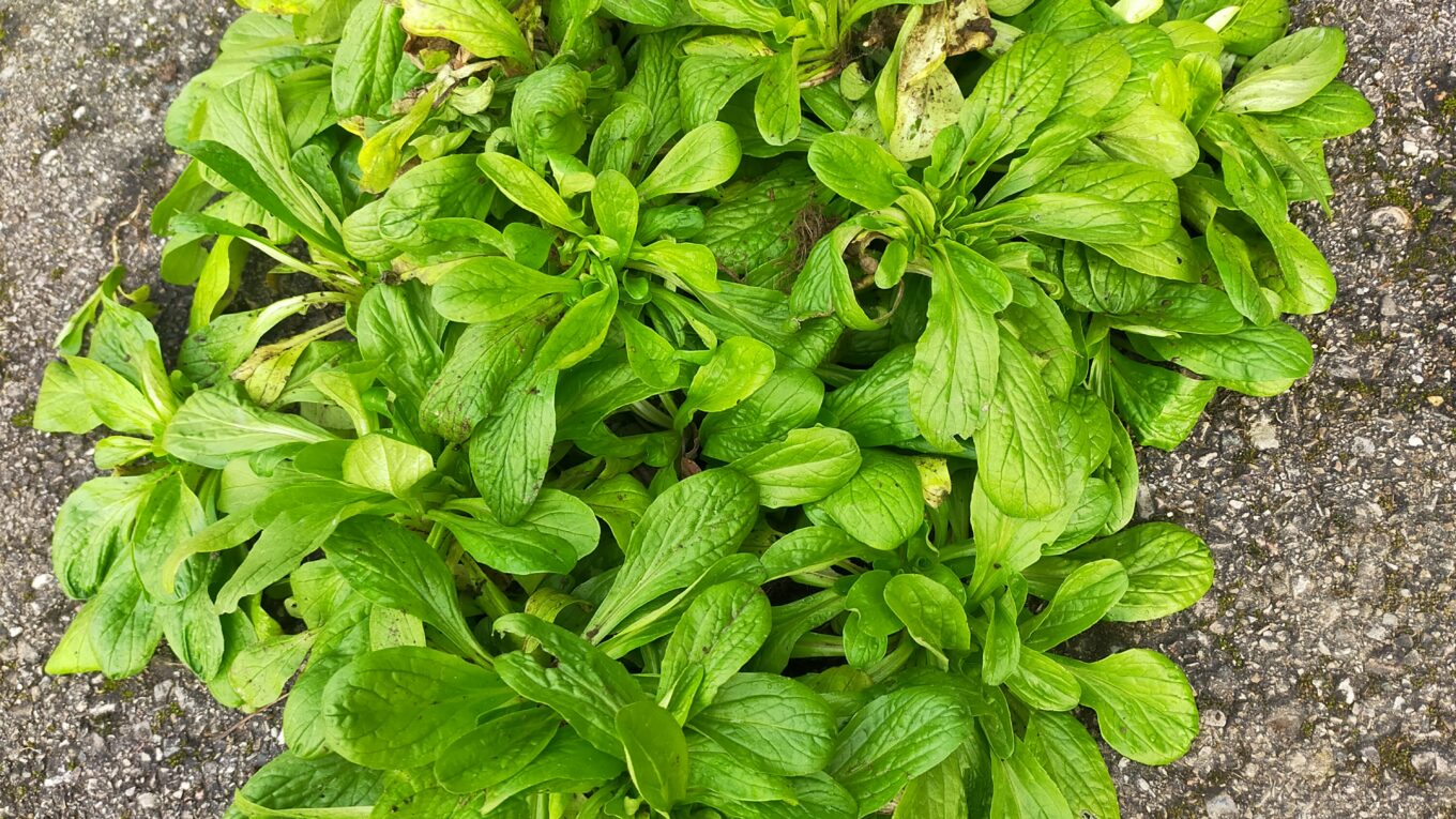 La récolte de mâche a été bonne aujourd’hui ! La guirlande se poursuit… Et les patates douces sont en place